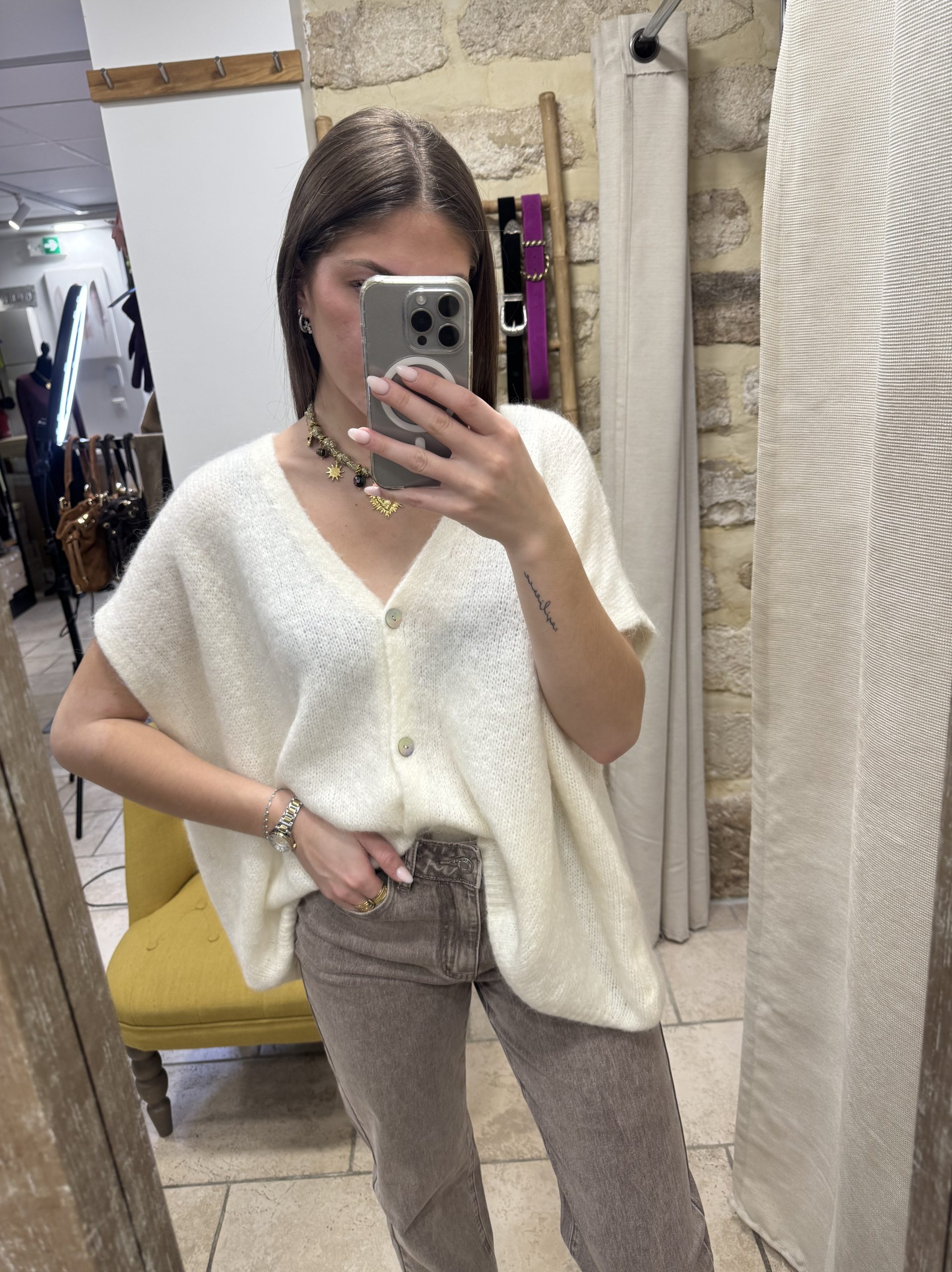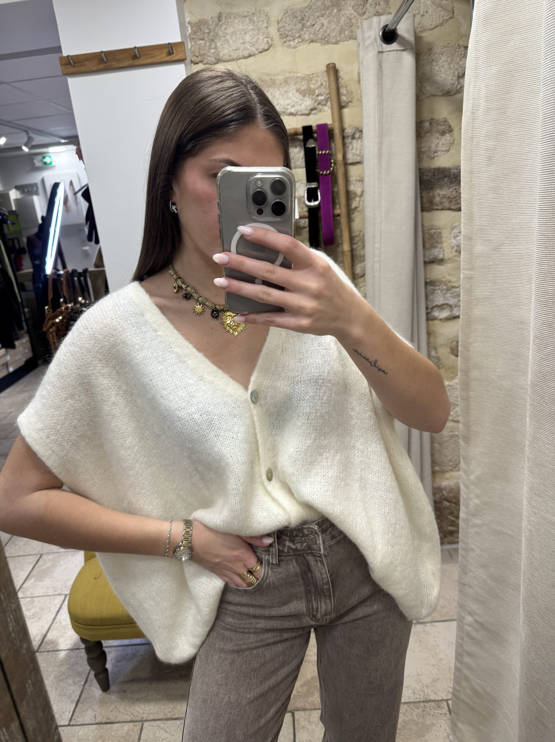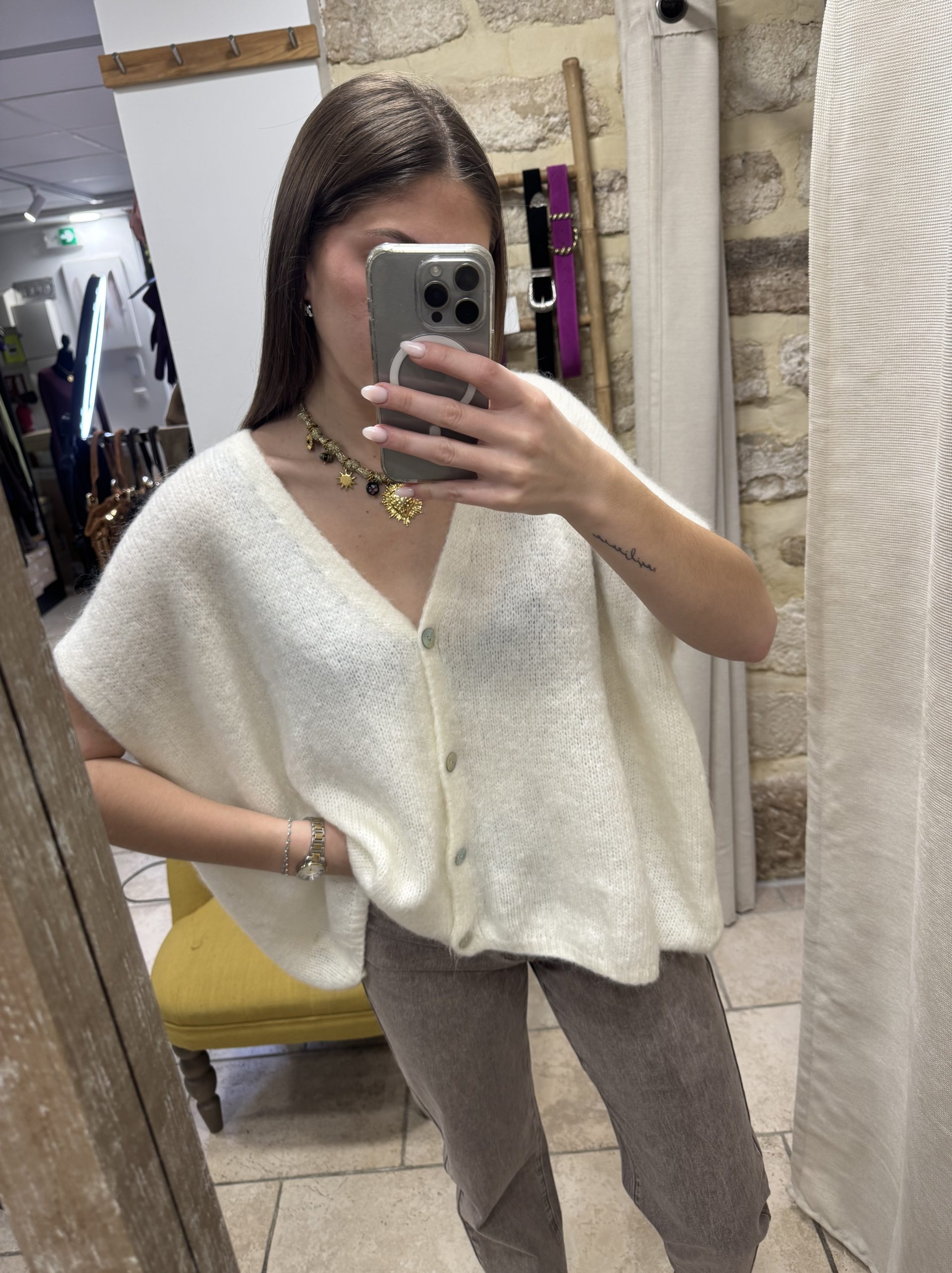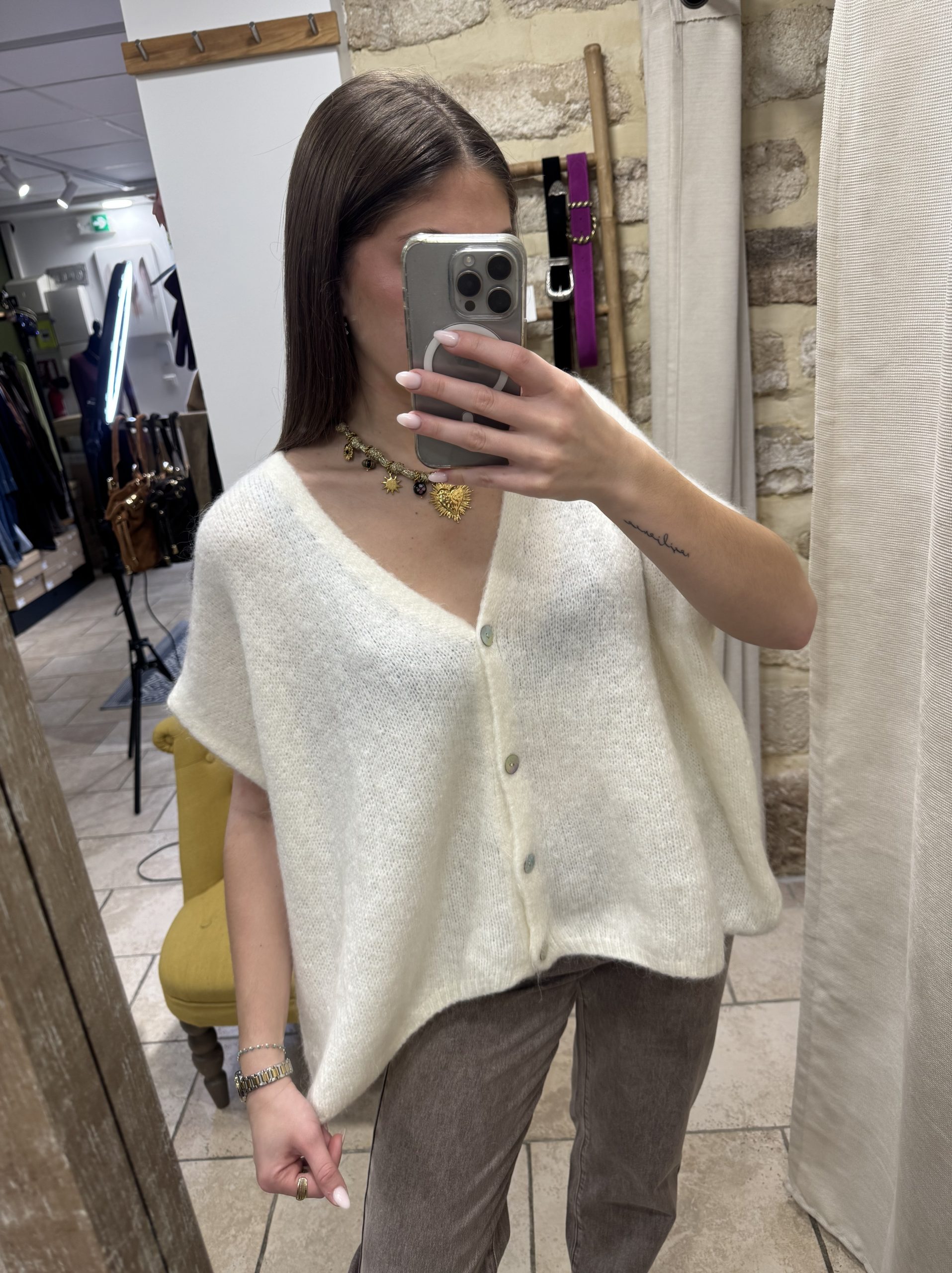 59,00€Le prix initial était : 59,00€.35,00€Le prix actuel est : 35,00€.Gilet écru