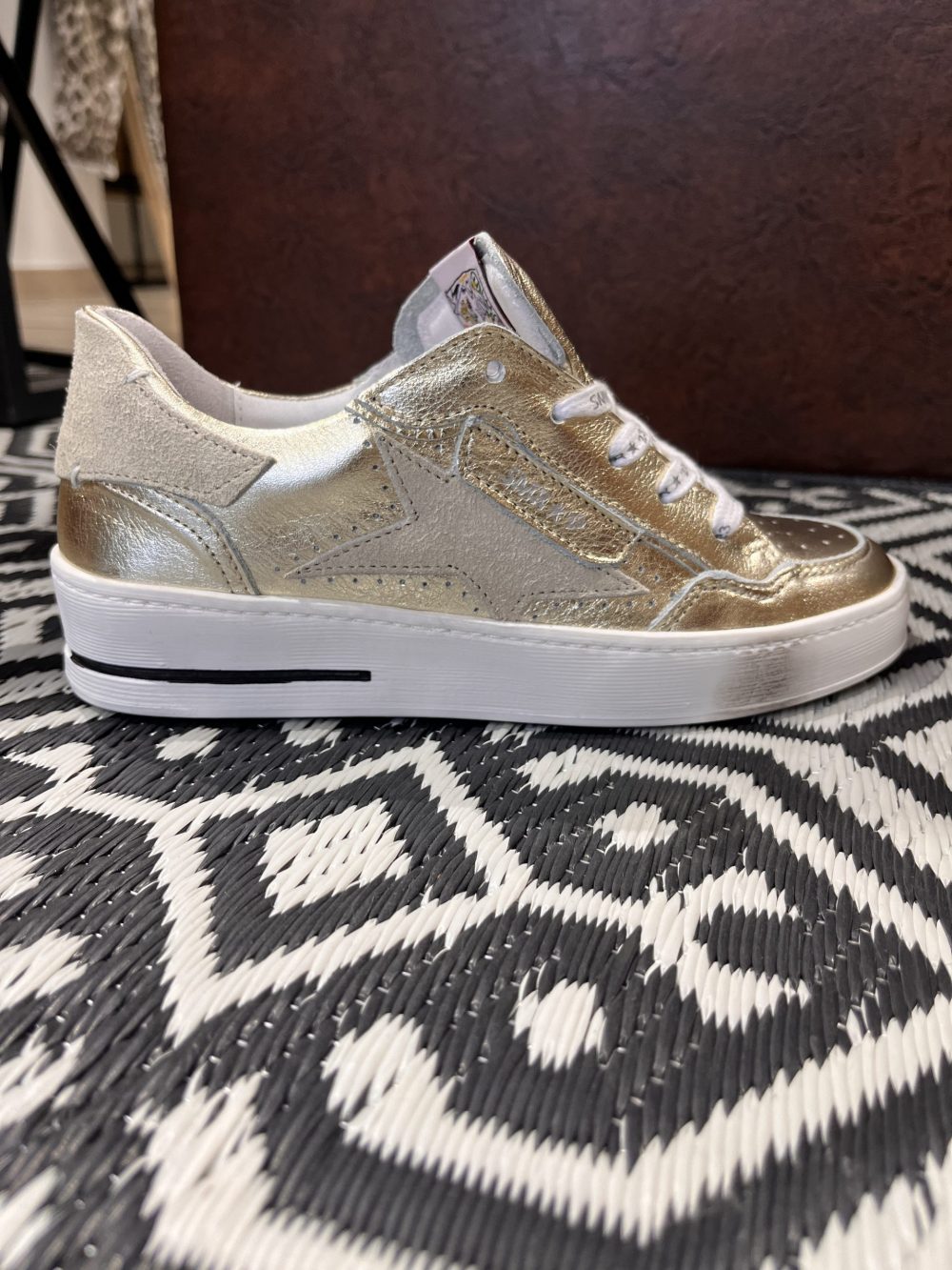 Les Baskets Basses Ale A606 de chez SMR sont conçues avec une tige en cuir et textile, offrant durabilité et style. La doublure et la semelle intérieure en cuir assurent un confort optimal, tandis que la semelle extérieure en élastomère garantit une bonne adhérence. Ces baskets présentent des empiècements multi-matières doré avec un aspect daim, ainsi qu’une semelle effet usé. La languette est ornée du logo SMR.