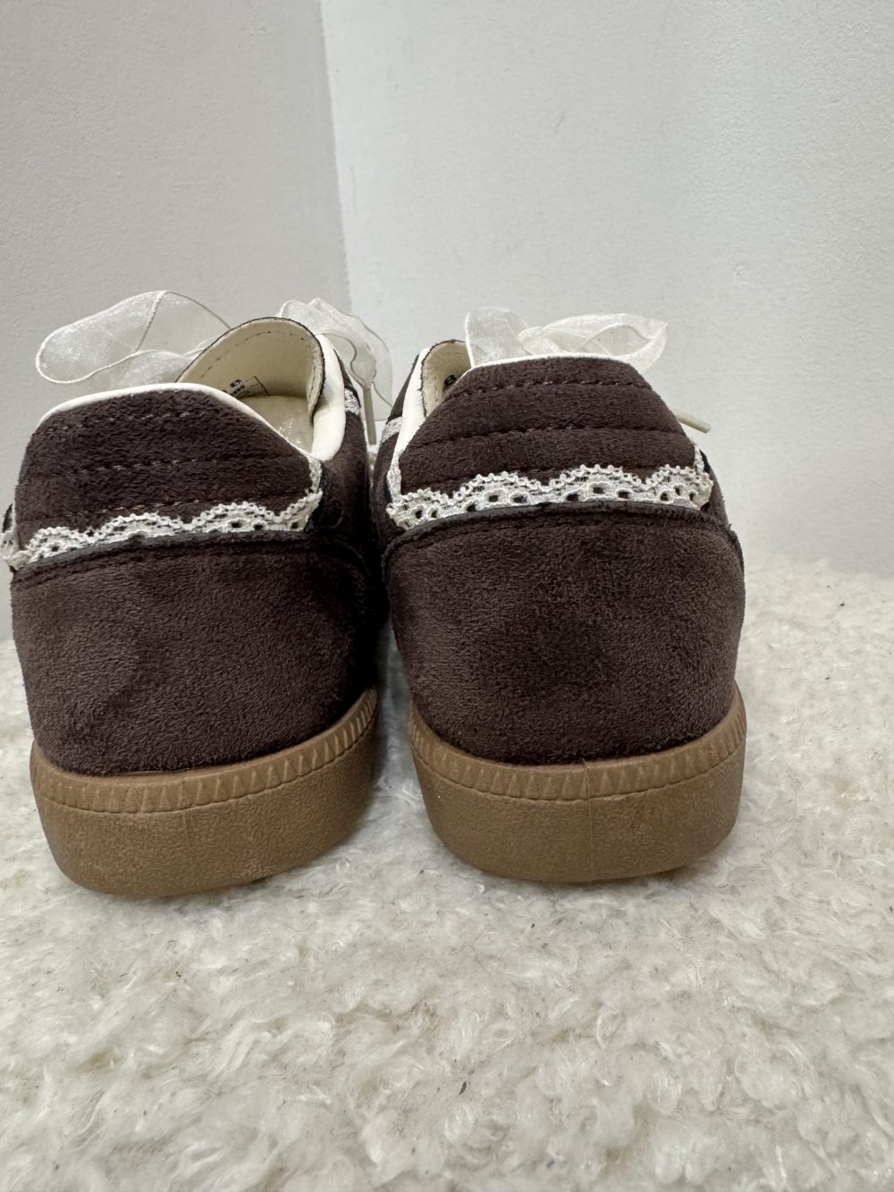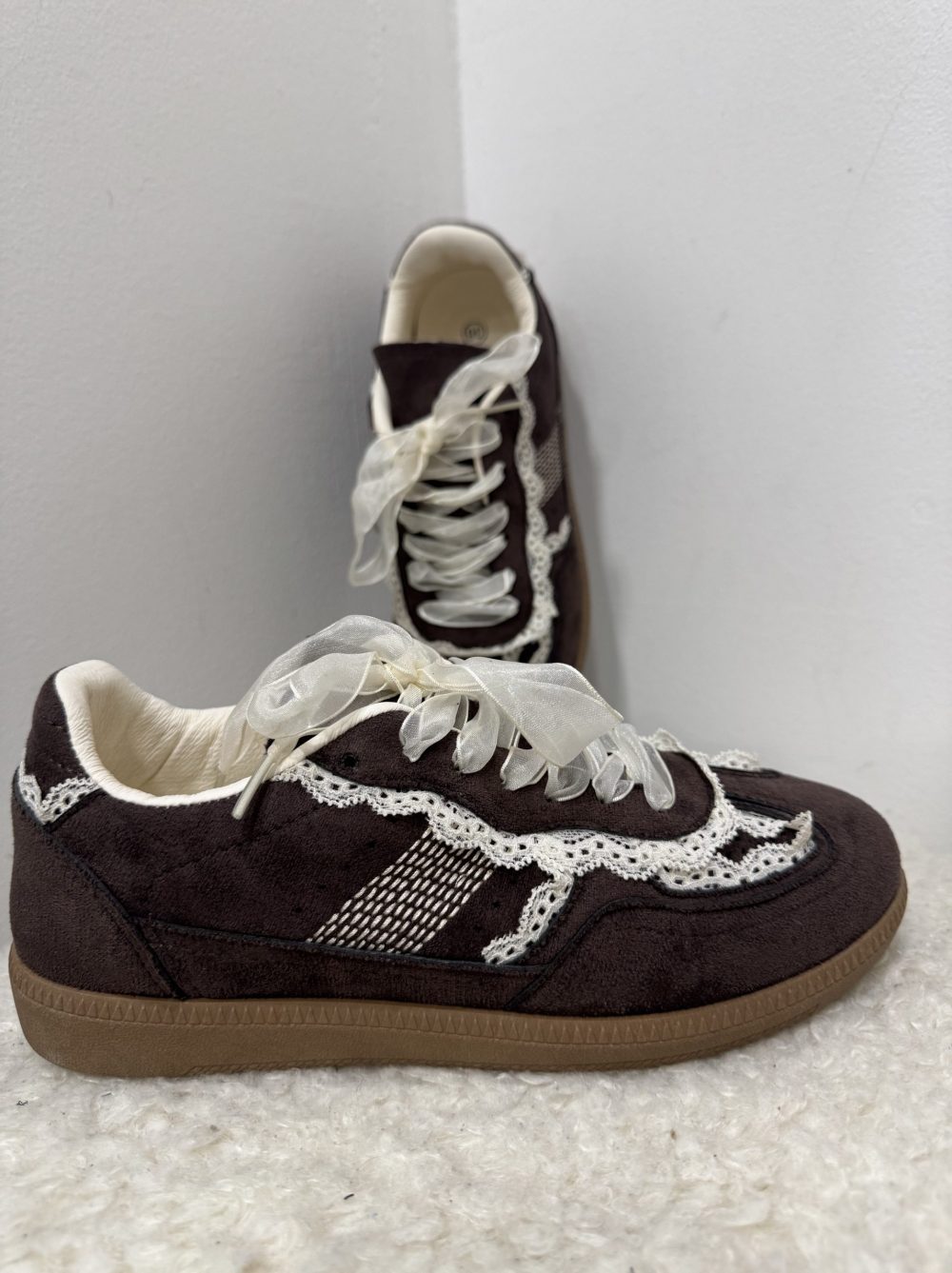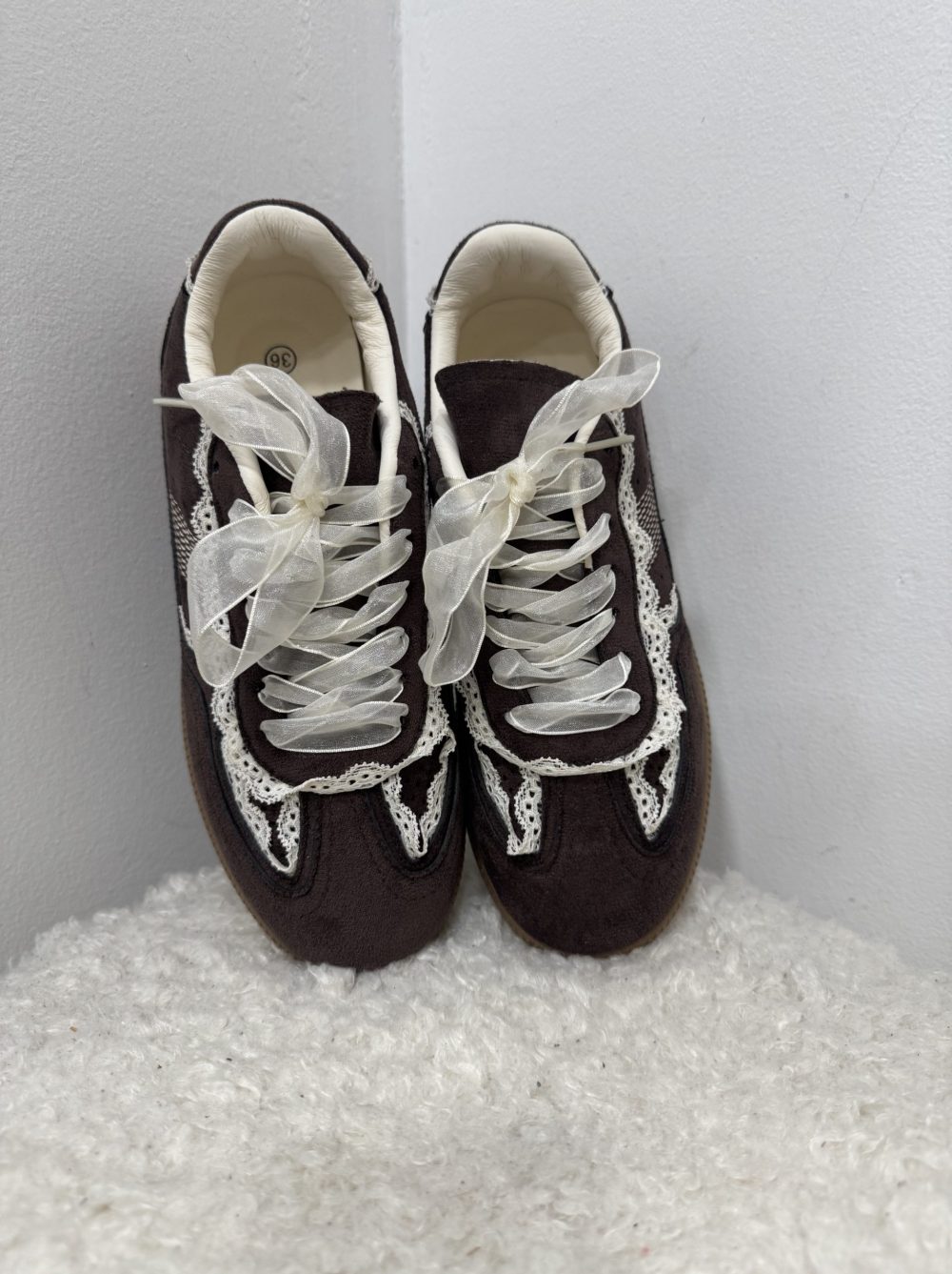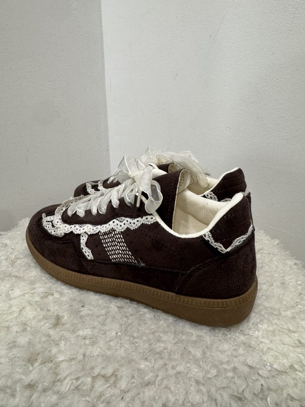 Baskets en suédine marron avec détails dentelle et lacets en ruban