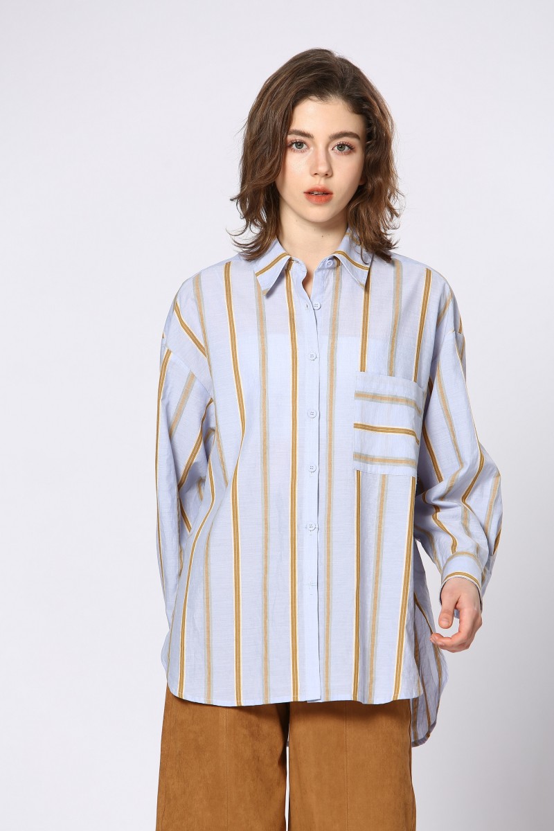 Chemise seeusoon longue et loose en jolie rayures avec manches longues 90%coton